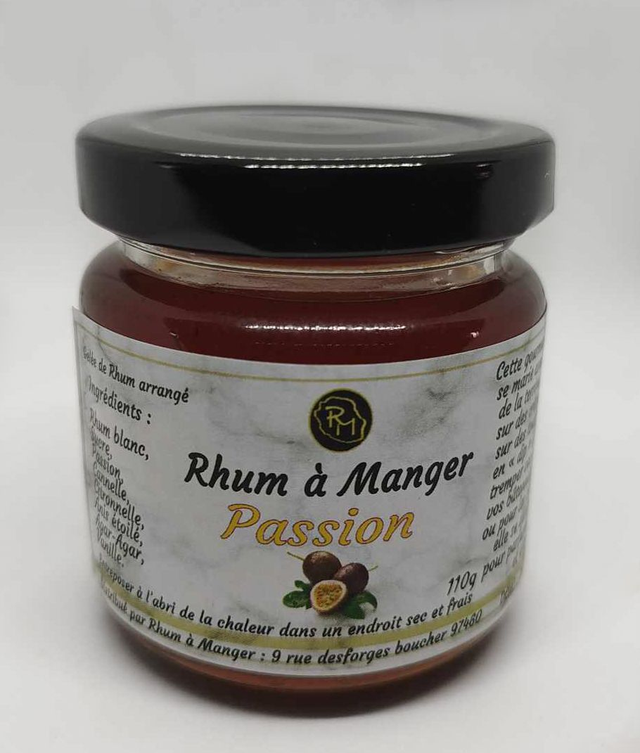 Gelée de rhum arranger, fruit, citronnelle, cannelle, agar-agar, vanille
